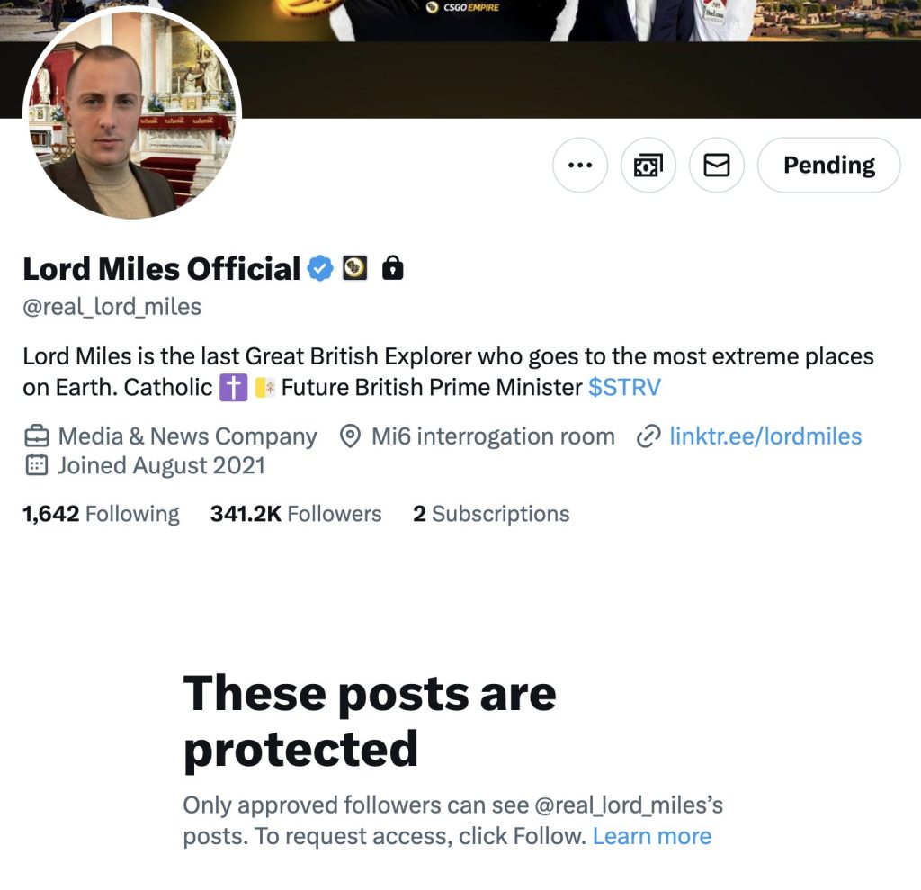 But now, a screenshot is doing the rounds that appears to show a statement on his profile — and it suggests Lord Miles is still alive. It claims: